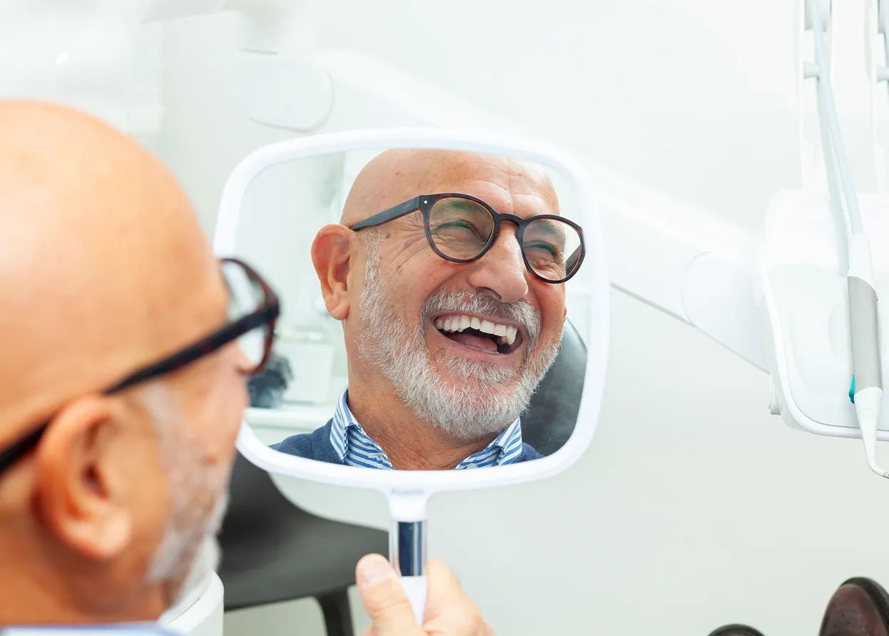 Anyone who has suffered tooth loss will know how it can affect your self‑confidence and quality of life. Thankfully, you no longer have to put up with the inconvenience of missing teeth or ill‑fitting dentures. The All‑on‑Four and All‑on‑Six same‑day teeth systems can give you a full set of teeth in just one appointment. If you only need to replace one or two teeth, you can learn about single implants on our dental implants page.